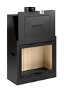 Πλαίσιο από μάρμαρο Biancone βουρτσισμένο με κλιμακωτές λεπτομέρειες. Στη φωτογραφία: τζάκι ξύλου ME 90/70.