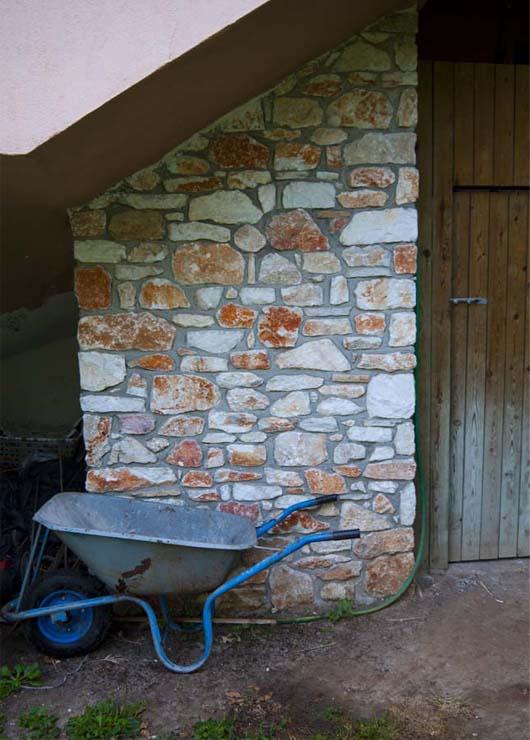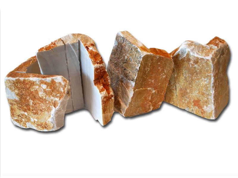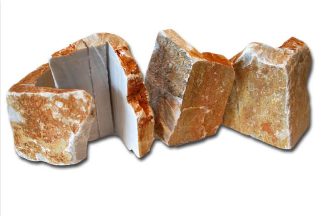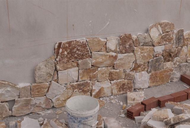 Τα κομμάτια από πέτρα που προορίζονται για ίσιες επιφάνειες είναι περίπου 10-30cm και τα κομμάτια από πού προορίζονται για γωνίες έχουν ύψος 20-30cm και μήκος πλευρών 10-30 cm περίπου.
