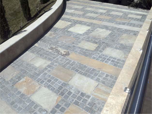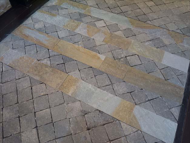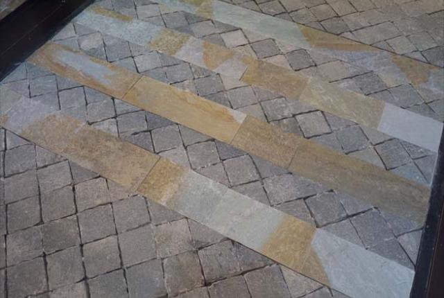 Το υπόστρωμα είναι από σκυρόδεμα (νέο ή παλιό). Ελαφρά οπλισμένο (πλέγμα) αν είναι νέο. Επι του σκυροδέματος τοποθετείται ο κυβόλιθος με τσιμεντοκονία (συνίσταται η χρήση ρητίνων). Για την αρμολόγηση μπορεί να χρησιμοποιηθεί αυτή η τσιμεντοκονία ή μείγμα άμμου-τσιμέντου και να "ποτισθεί" με νερό. Αυτός ο τρόπος συνίσταται εκτός από επίπεδες επιφάνειες και σε επιφάνειες με μεγάλη κλίση εδάφους.