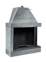 Επένδυση από μάρμαρο Trani χτυπητό. Βάση, μετώπη και ένθετα από μάρμαρο Tigrato Orientale γυαλιστερό. Δοκός με καπλαμά ιταλικής καρυδιάς. Πάγκος αντιστρέψιμος από μάρμαρο Trani χτυπητό, με βάση από μάρμαρο Tigrato Orientale γυαλιστερό, κατόπιν παραγγελίας (στη φωτογραφία: τζάκι ξύλου HT 810).