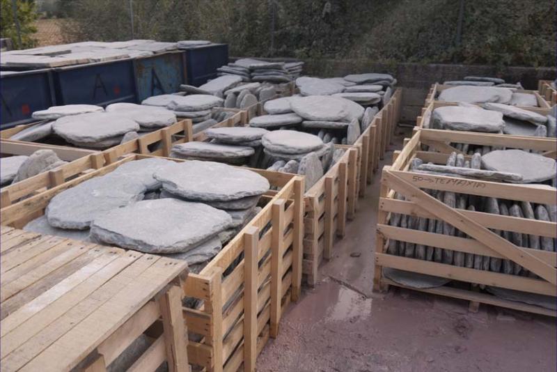Διακόσμηση Κήπου με, Πατήματα αντίκ Καβάλας - παράγονται από τις ακανόνιστες πλάκες Καβάλας κατόπιν επεξεργασίας σε κάδους αναπαλαίωσης.