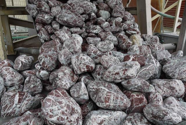 Βότσαλο Κόκκινο παράγονται από κόκκινο μάρμαρο κατόπιν ειδικής επεξεργασίας με σπαστήρες και με περιστροφικούς κυλίνδρους.
